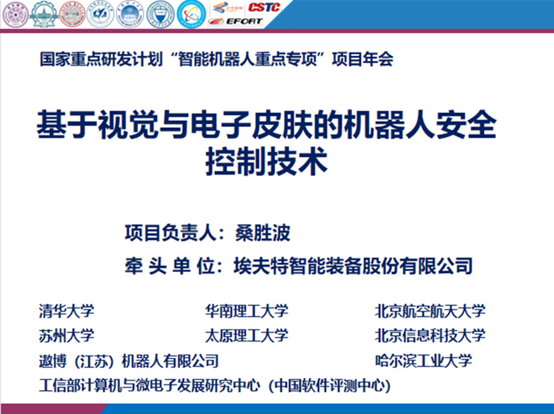 2021年1月16日,由qy球友会信息与计算机公司经理、微纳系统研究中心方向带头人桑胜波教授作为项目负责人,埃夫特智能装备股份有限公司牵头,qy球友会、清华大学、苏州大学、华南理工大学、哈尔滨工业大学、北京航空航天大学、北京信息科技大学、遨博(江苏)机器人有限公司、工业和信息化部计算机与微电子发展研究中心(中国软件评测中心)等单位参与的国家重点研发计划智能机器人专项“基于视觉与电子皮肤的机器人安全控制技术”2020年度项目总结会议在线上成功召开。